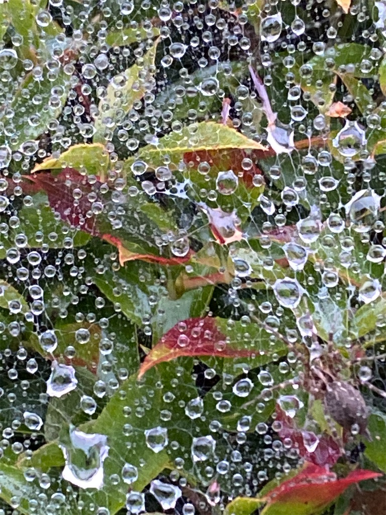 クモの巣の上の雨粒
