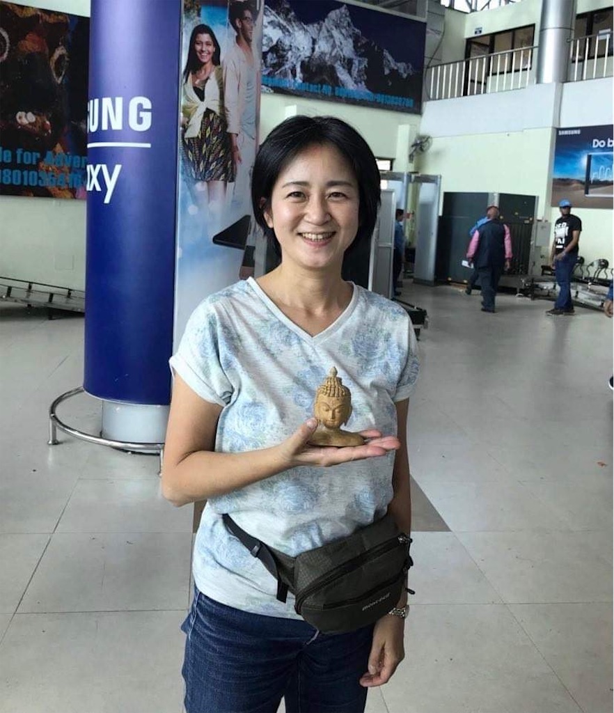 ヒマラヤで手に入れた仏像と一緒のアッコちゃん。
